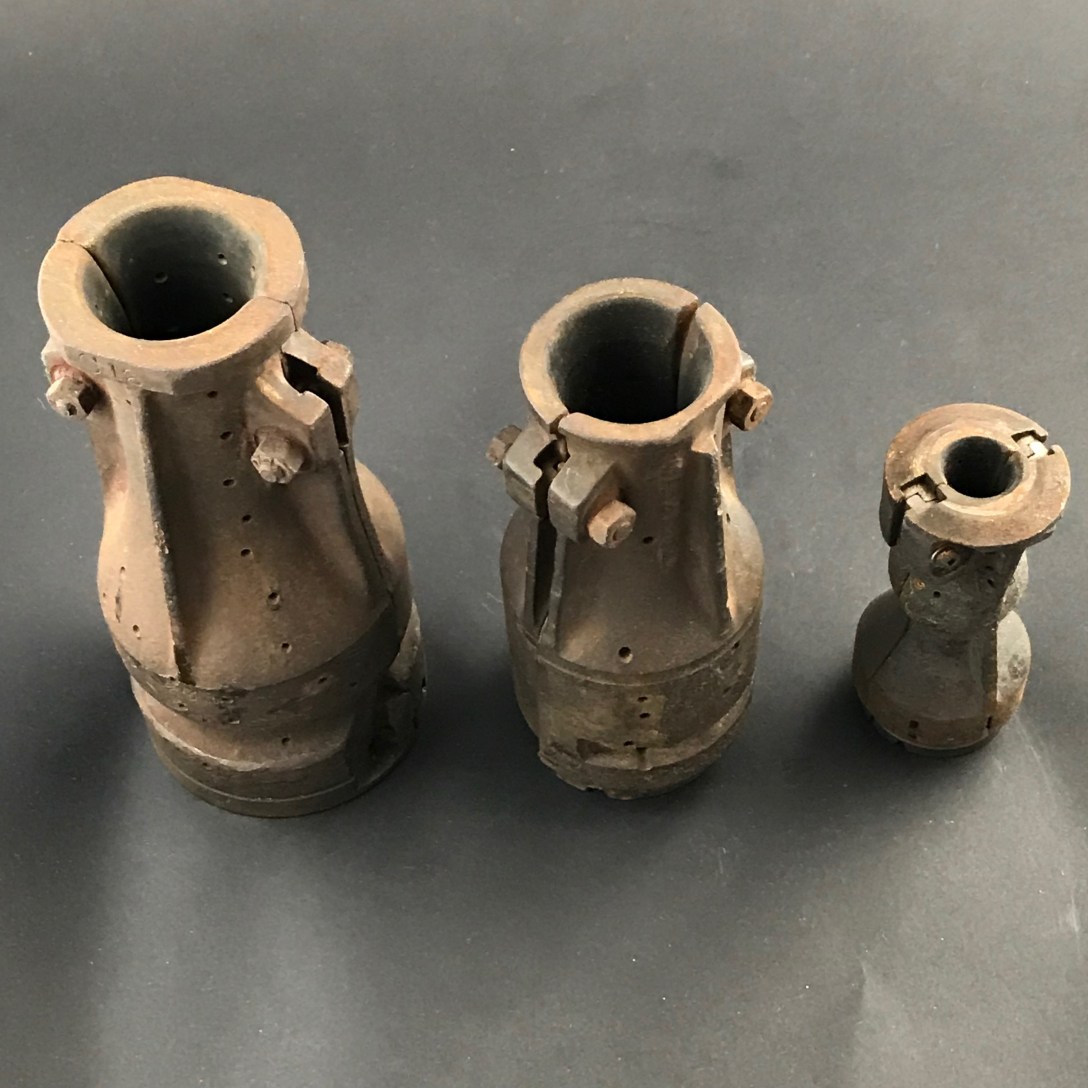 This will add some detail to the posting of the YouTube video about the ribbon machine. I’ve found these molds that were used to form items ribbon machine. The machine was used to make a variety of items: light bulbs, tubes, and Christmas decorations among them.